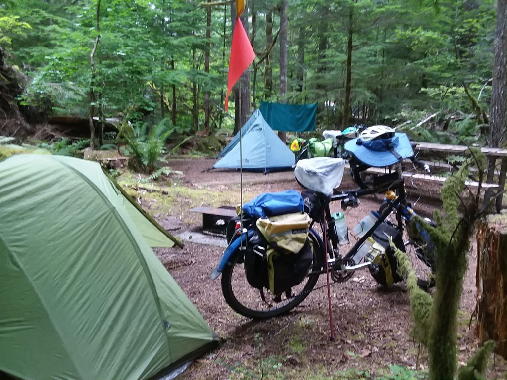 We reach Newhalem State Park and after some searching find the hiker/biker camp. It is well hidden. There are nice showers not too far away!